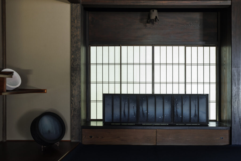 Water and Light Project, Kyoto, New York, Seattle. Working with the interaction of light and sound where anything happens. Images on walls fall like water, fly like birds…Sound sets the mood